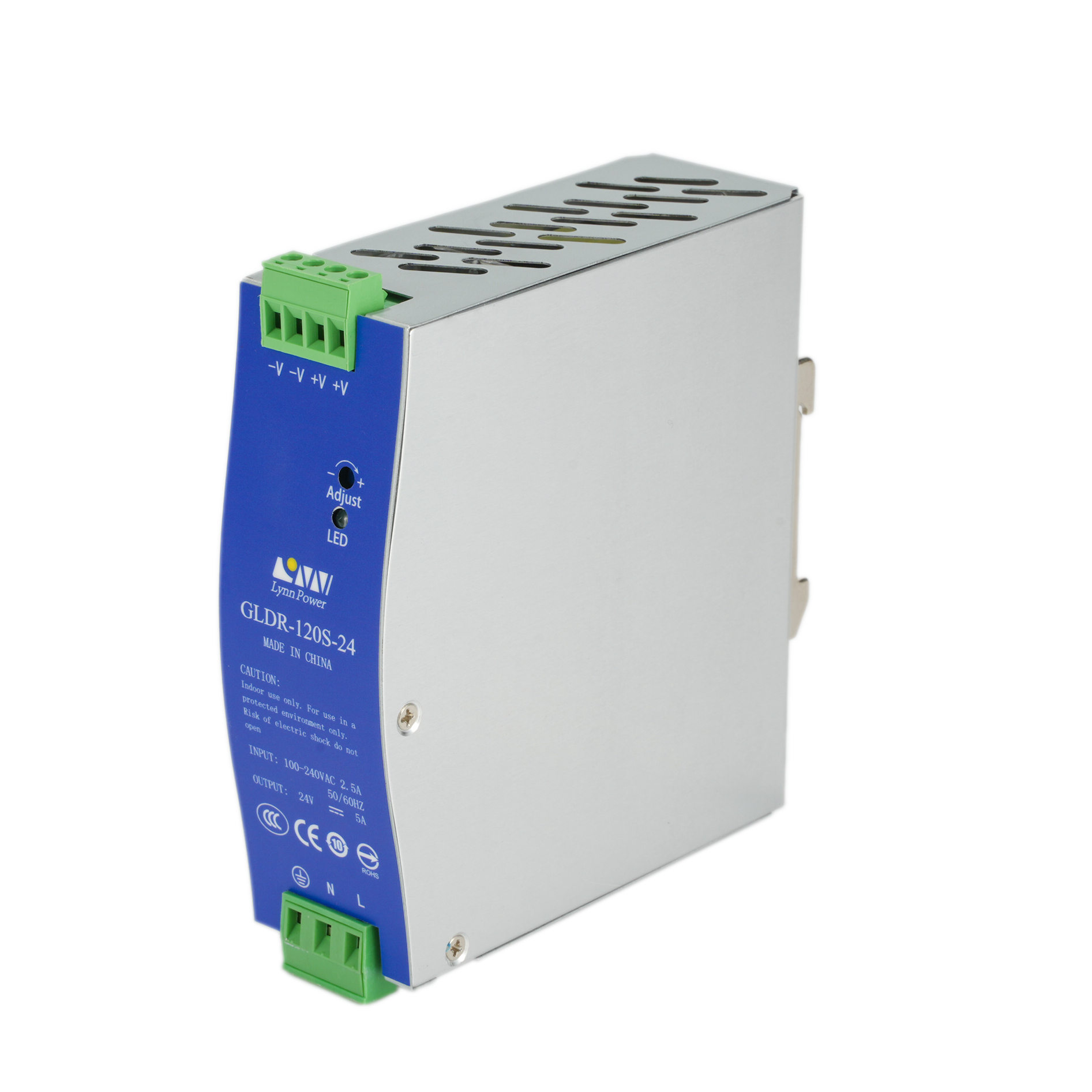 GLDR series belongs to single-phase metal rail series power supply, power range is 75-480W, the power supply small size, light weight, compact structure, standard DIN-rail mounting for customers to save a lot of space. It has the advantages of high cost performance, high energy efficiency, standard DIN-rail mounting (35mm), compact structure, high stability and strong anti-interference ability. The whole series can work in -20℃ to 60℃ ambient temperature under air circulation condition, it has constant current mode overload protection function, suitable for a variety of inductive or capacitive load applications.