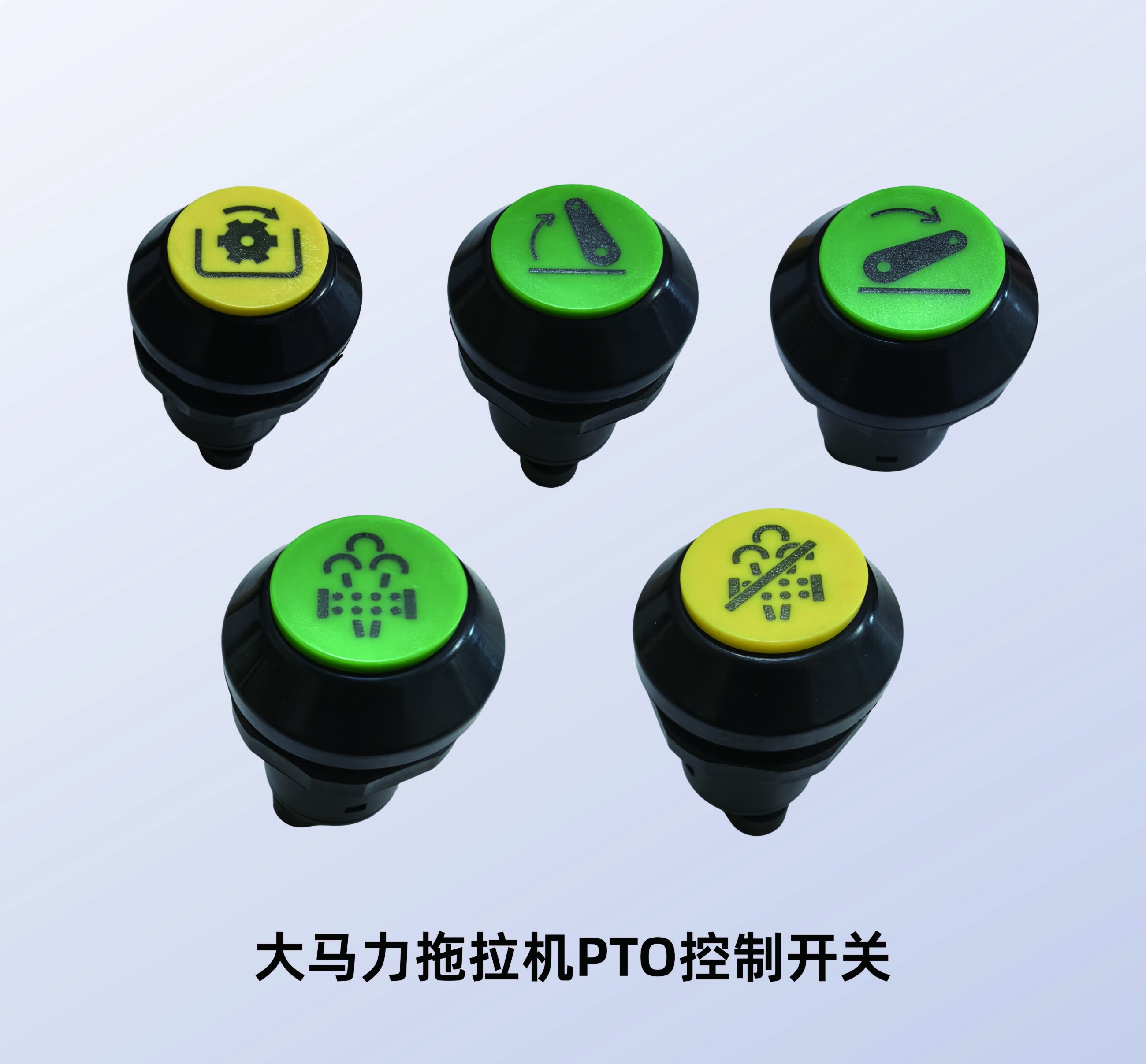 PTO开关,大马力拖拉机PTO控制开关,应用领域:拖拉机等农机设备。主要特点:操作寿命:100万次;IP67,抗紫外线,适用于户外作业场景;稳定可靠。